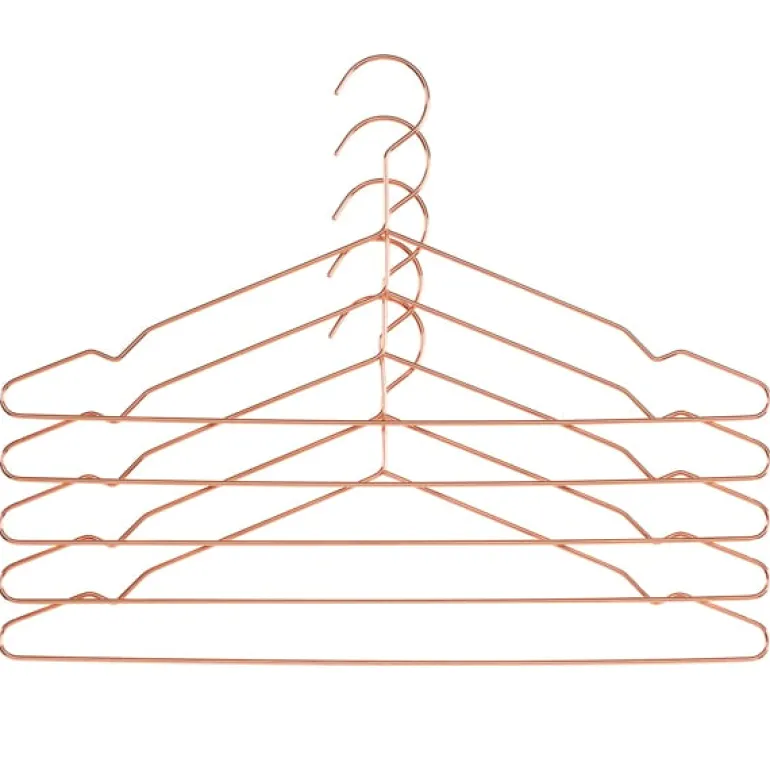 Hang är en lätt och elegant galge av Hay. Hang-galgens minimalistiska utseende passar hallen såväl som klädställningen i sovrummet. Setet består av fem koppargalgar.
