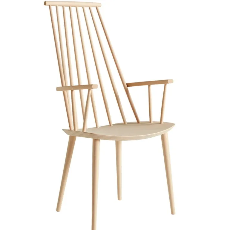 Matstolen J110 från Hay, designad av Poul M. Volther, är en vacker trästol i massivt bokträ. J110 har samma sitshöjd som andra matstolar i kollektionen, men tack vare det höga ryggstödet och armstöden påminner den lite om en fåtölj. Placera J110-stolen vid ett matbord eller använd den som en enklare fåtölj för att ge en fräsch skandinavisk touch till vilket rum som helst.
