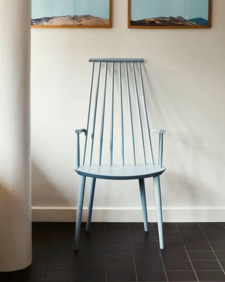 Matstolen J110 från Hay, designad av Poul M. Volther, är en vacker trästol i massivt bokträ. J110 har samma sitshöjd som andra matstolar i kollektionen, men tack vare det höga ryggstödet och armstöden påminner den lite om en fåtölj. Placera J110-stolen vid ett matbord eller använd den som en enklare fåtölj för att ge en fräsch skandinavisk touch till vilket rum som helst.