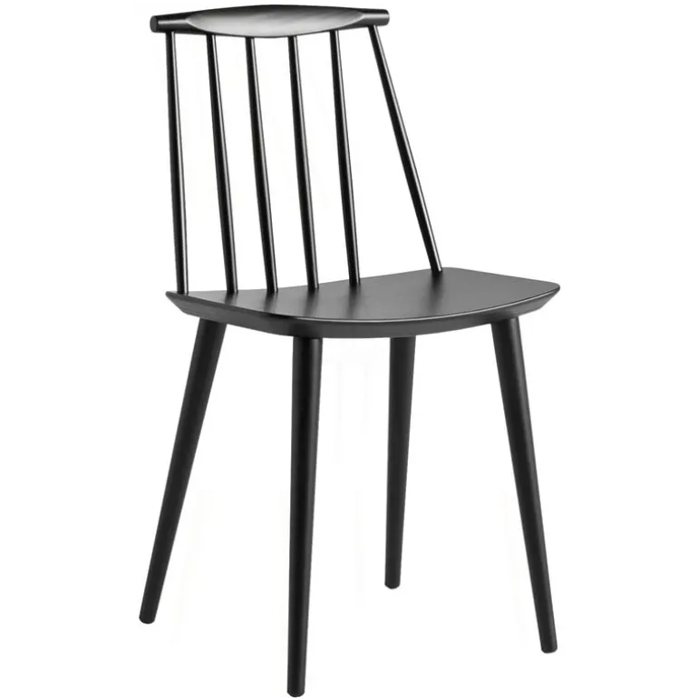 Matstolen J77, formgiven av Folke Pålsson, är en klassisk trästol i massiv bok. Det vida sätet och det böjda ryggstödet skapar en bekväm sittposition. J77-stolens klassiska design hedrar traditionerna inom skandinavisk design.