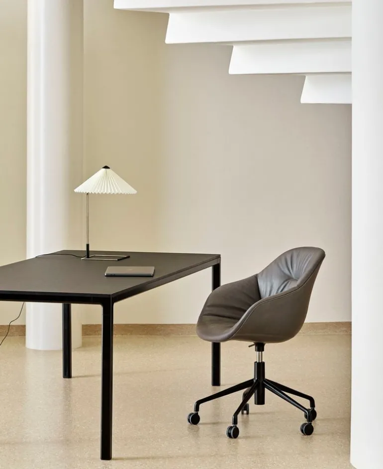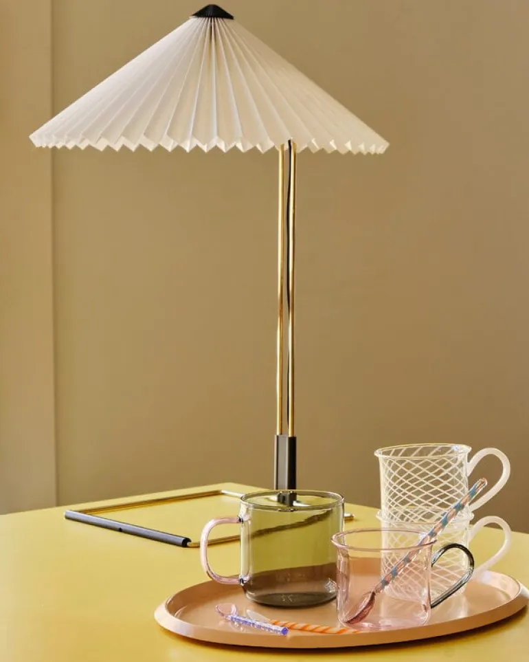 Matin är en elegant bordslampa från Hay, formgiven av Inga Sempé. Lampan har en vackert veckad skärm som finns i en rad kulörer, både klara och mer dämpade. Skärmen vilar på ett slankt och geometriskt metallstativ. Matin har en charmig klassisk look med en modern twist. Den sprider elegant sitt mjuka ljus på kontoret, i sovrummet eller i offentliga miljöer.