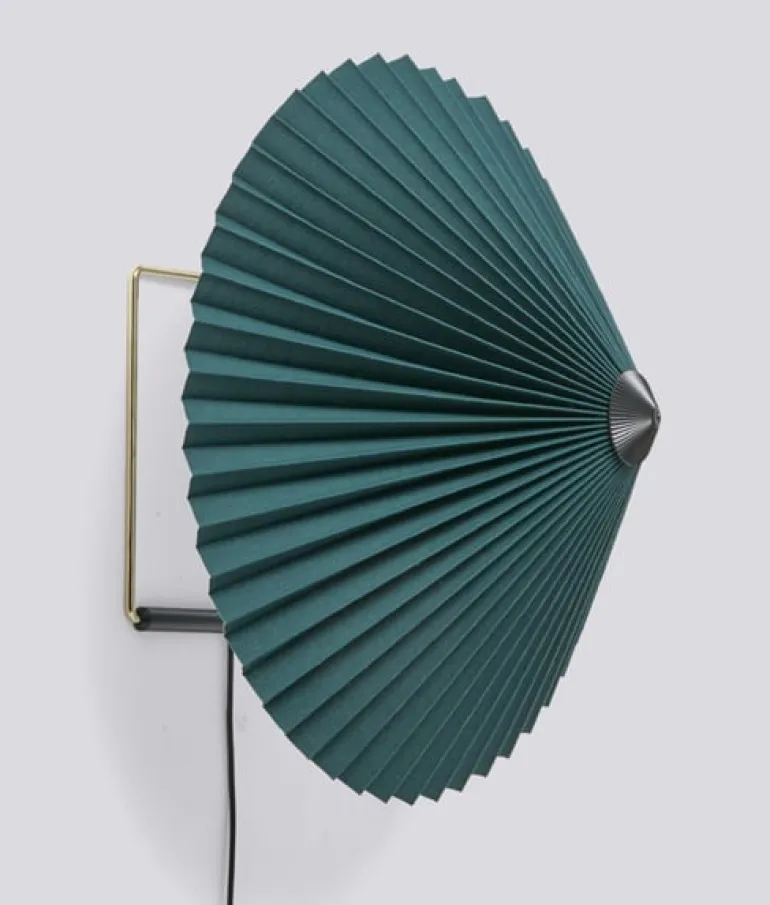 HAY:s Matin 300 är en förtjusande delikat vägglampa designad av Inga Sempé. Lampan kännetecknas av sin vackert veckade skärm, tillgänglig i en rad både ljusa och dämpade färger, som är placerad på en smal, geometrisk metallram. Huvudet på den väggmonterade armaturen kan vinklas både uppåt och nedåt, vilket skapar antingen en atmosfärisk allmän glöd eller ett mer riktat nedåtriktat ljus. Den charmigt klassiska lampan, om än med en modern twist, ger elegant belysning för en läshörna, sovrum eller offentliga utrymmen.