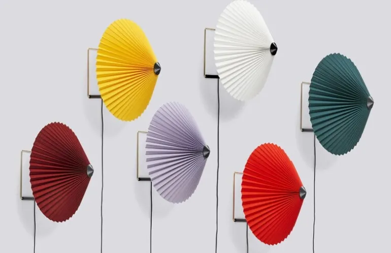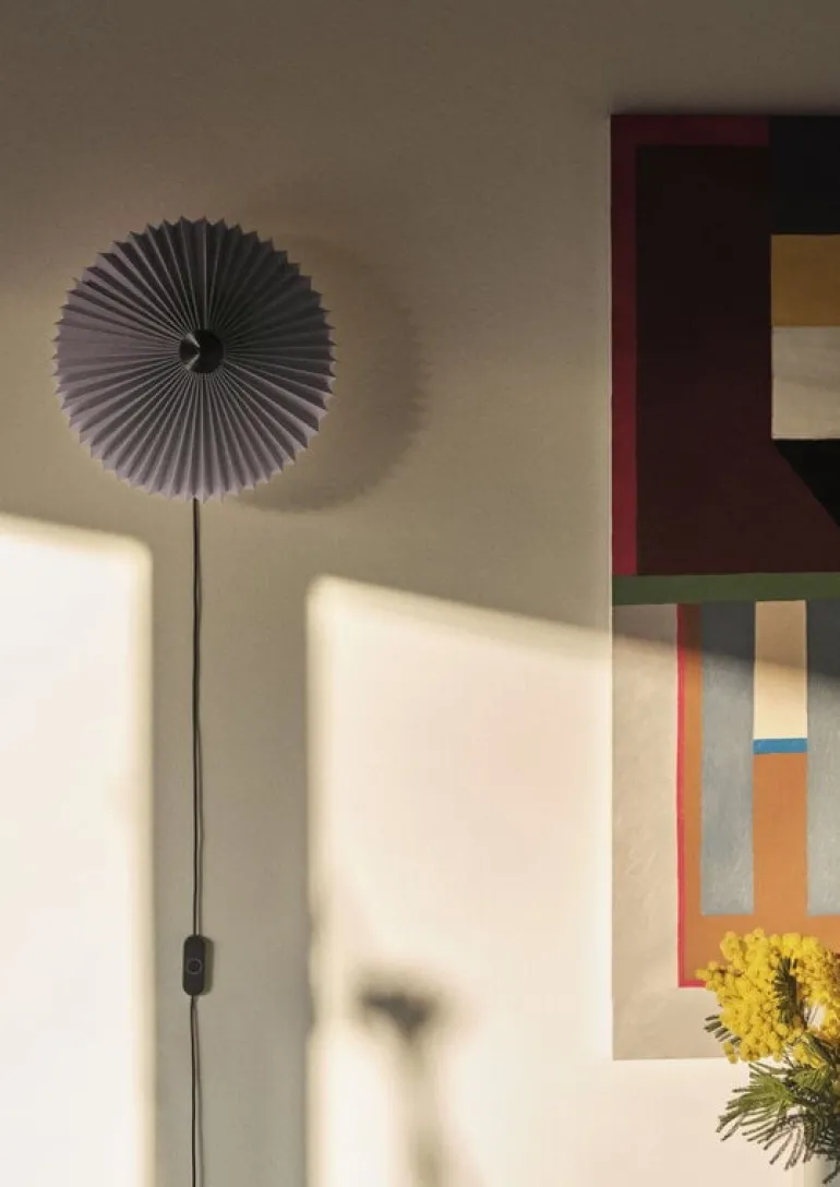 HAY:s Matin 300 är en förtjusande delikat vägglampa designad av Inga Sempé. Lampan kännetecknas av sin vackert veckade skärm, tillgänglig i en rad både ljusa och dämpade färger, som är placerad på en smal, geometrisk metallram. Huvudet på den väggmonterade armaturen kan vinklas både uppåt och nedåt, vilket skapar antingen en atmosfärisk allmän glöd eller ett mer riktat nedåtriktat ljus. Den charmigt klassiska lampan, om än med en modern twist, ger elegant belysning för en läshörna, sovrum eller offentliga utrymmen.