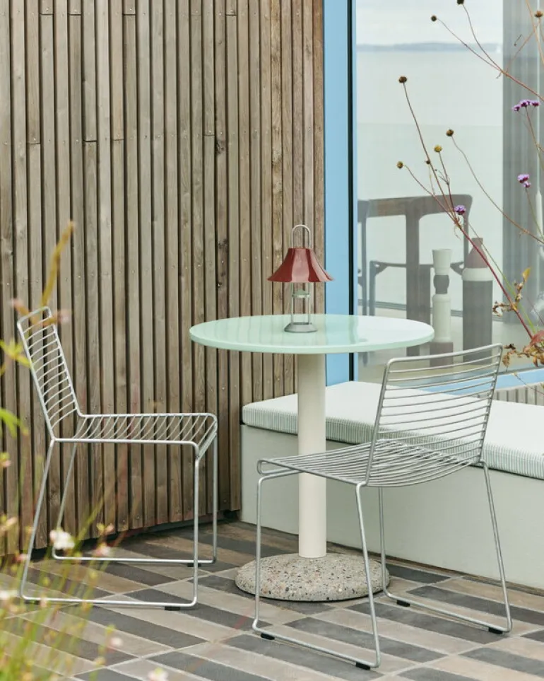 Den uppladdningsbara bordslampan Mousqueton från HAY har fått sitt namn från det franska ordet för karbinhake. En karbinhake är en oval metallkrok med fjädermekanism, som bland annat används inom segling och bergsklättring. Haken gör att det går snabbt att koppla i hop och koppla loss rep, kedjor, kablar och tampar – om du tittar lite närmare på lampans design märker du att även den har likheter med det fiffiga lilla redskapet! Precis som sin förebild kan lampan hängas upp på en gren eller i ett rep utomhus. Den bärbara Mousqueton-lampan, formgiven av Inga Sempé, är perfekt för både inomhus- och utomhusbruk. Stommen på lampan är gjord av rostfritt stål och har en zinklegering som gör den väderbeständig. Det uppladdningsbara batteriet får lampan att lysa i upp till 10 timmar på en enda laddning.