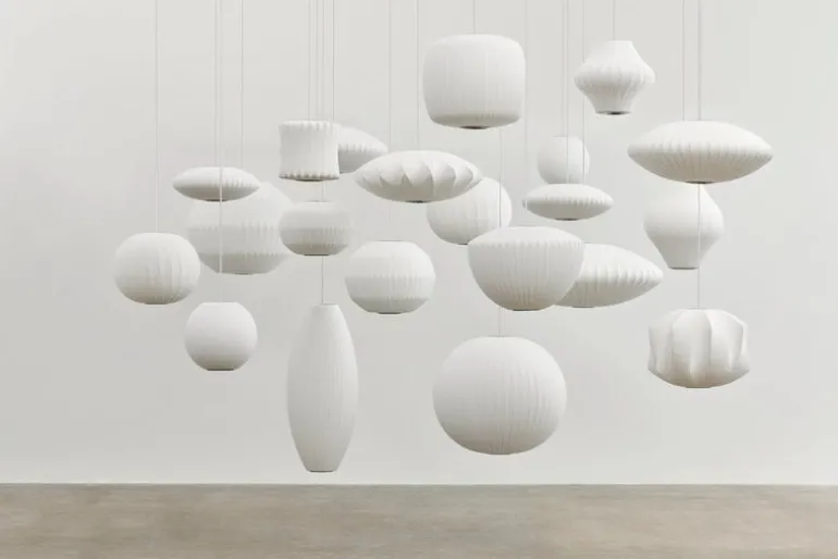 Stora Nelson Angled Sphere Bubble ingår i en belysningsserie som designades av George Nelson och producerades av Herman Miller på 1950-talet. Nelson ville köpa en liknande svensk lampa av silke. Han valde dock istället att designa sin egen version av pendellampan för att spara tid och pengar. Lamporna i kollektionen tillverkas fortfarande i samma fabrik som började tillverka dem 1952.