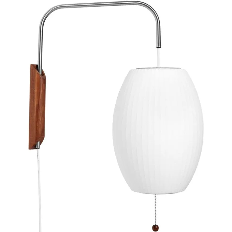 Den runda silhuetten på Nelson Cigar skapas genom att spraya en genomskinlig plastpolymer över en ståltrådsram, vilket ger en mjuk belysning och en inbjudande atmosfär i varje rum. Vägglampan är en elegant ljuskälla som passar för olika typer av utrymmen i hem, caféer eller kontor.