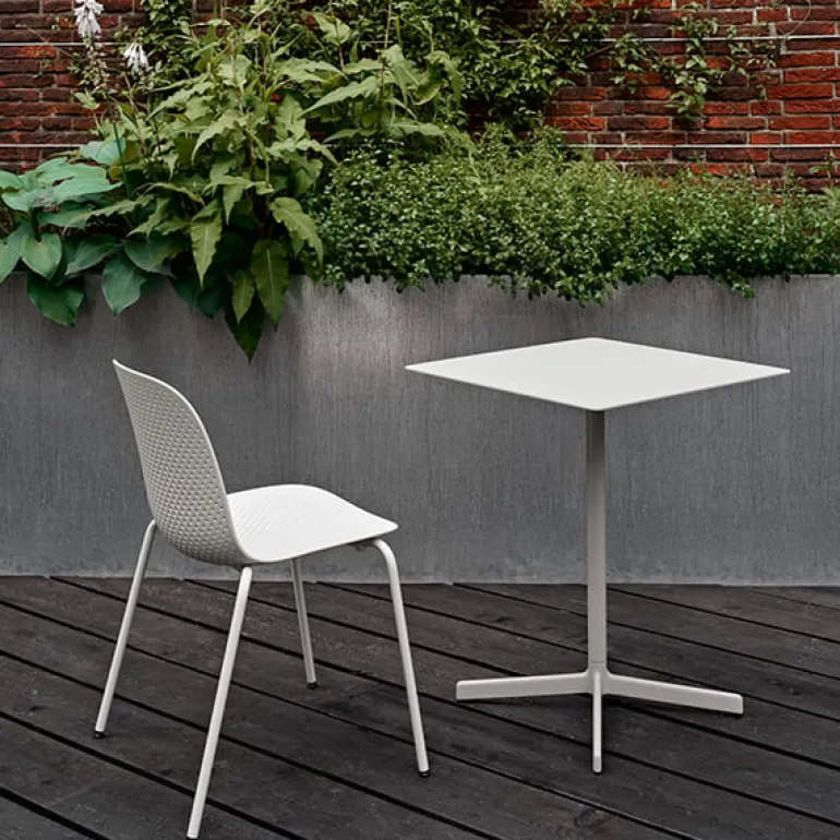 Hays Neu är ett strömlinjeformat metallbord som är avsett för både inomhus- och utomhusbruk. Neu-bordets enkla, geometriska design består av en rund eller fyrkantig bordsskiva och en robust, rörformad stång i mitten. Det stilrena och funktionella bordet är ett utmärkt val till offentliga och privata rum, trädgårdar och terrasser.
