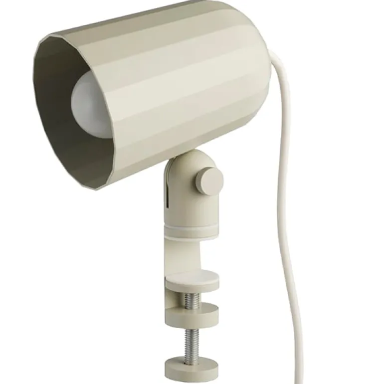 Klämlampan Noc från Hay kan användas till bordsskivor, hyllor och sänggavlar. Den facetterade skärmen är gjord av formgjuten aluminium och har en slät, pulverlackerad yta. Noc-lampans 2 meter långa nätsladd löper genom väggfästet, och på sladden finns även en vippströmbrytare. Den enkla formen på klämlampan Noc, formgiven av Londonbaserade SmithMattias, kommer att stå sig genom tiderna.