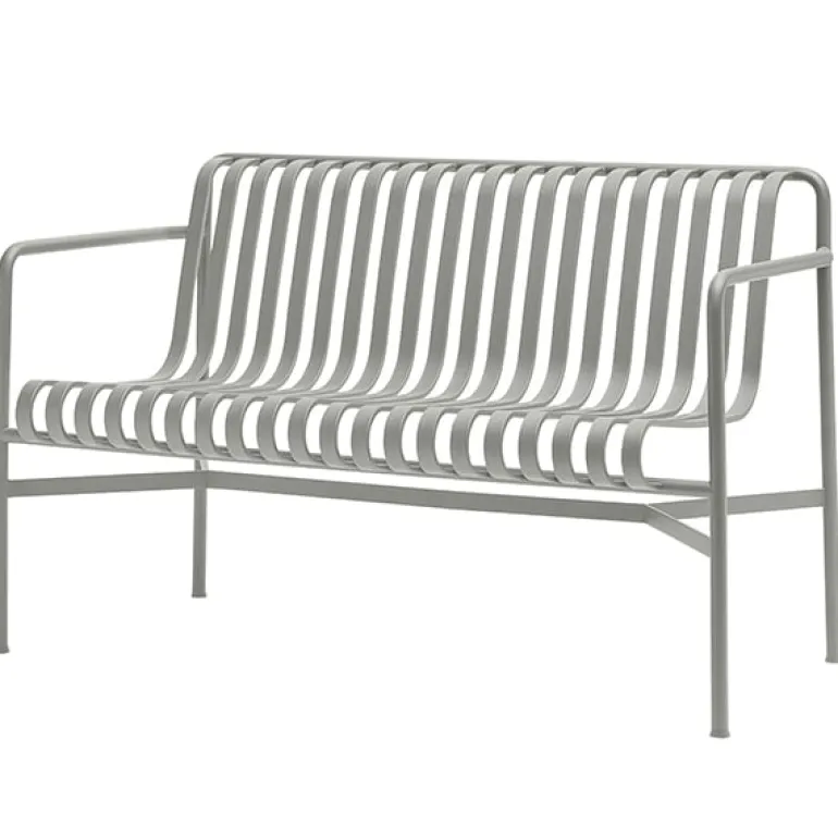Den eleganta men ändå robusta Palissade-bänken är medlem i Hays mångsidiga kollektion av utemöbler. Palissade utemöbler har en kraftfull, grafisk design som består av enkla stålrör och lameller. Ronan och Erwan Bouroullec arbetade med kollektionen i två år och skapade en kollektion med enkla, välavvägda möbler som lämpar sig väl för terrasser, balkonger, trädgårdar, kaféer och offentliga utrymmen. Palissade stolar, bord och bänkar är robusta men eleganta, och perfekta för utomhusbruk, eftersom vind och vatten kommer att passera genom den galvaniserade stålramen. Palissade-möblerna är gjorda för att åldras vackert, och paletten med dämpade färger förstärker intrycket av tidlöshet och mångsidighet.