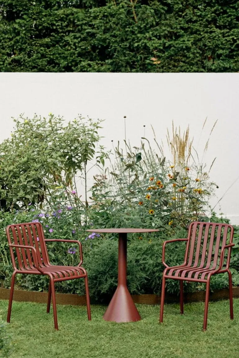 Bordet Palissade Cone, som har konformade ben i kombination med en tunn bordsskiva i stål, är ett stilistiskt framträdande och multifunktionellt tillskott i HAY:s utemöbelkollektion. Palissade utemöbler har en kraftfull, grafisk design som består av enkla stålrör och lameller.