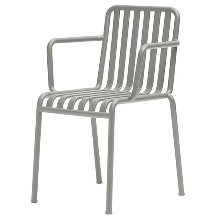 Den eleganta men ändå robusta Palissade-fåtöljen är medlem i Hays mångsidiga kollektion av utemöbler. Palissade utemöbler har en kraftfull, grafisk design som består av enkla stålrör och lameller. Ronan och Erwan Bouroullec arbetade med kollektionen i två år och skapade en kollektion med enkla, välavvägda möbler som lämpar sig väl för terrasser, balkonger, trädgårdar, kaféer och offentliga utrymmen. Palissade stolar, bord och bänkar är robusta men eleganta, och perfekta för utomhusbruk, eftersom vind och vatten kommer att passera genom den galvaniserade stålramen. Palissade-möblerna är gjorda för att åldras vackert, och paletten med dämpade färger förstärker intrycket av tidlöshet och mångsidighet.