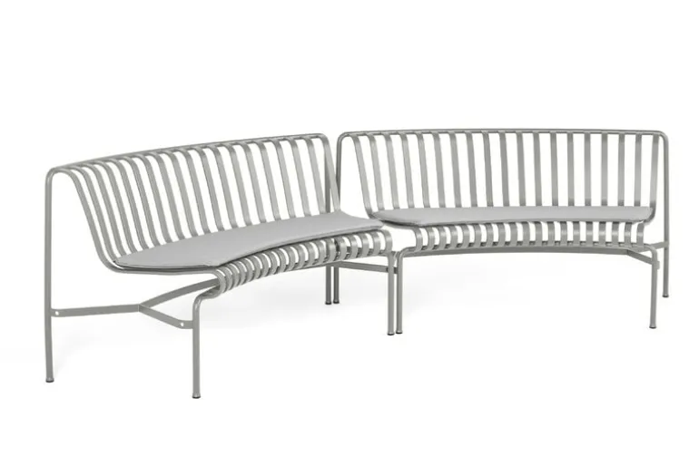 Matbänken Palissade Park är en del av HAY:s Palissade Park-kollektion, som består av modulära bänkar designade speciellt för större utomhusområden och kontraktsanvändning. Genom att koppla samman två eller fler bänkar kan du skapa anpassade sittarrangemang i bågformade, vågformade och runda konfigurationer. Bänkarnas grundmoduler är böjda antingen inåt (in) eller utåt (out).