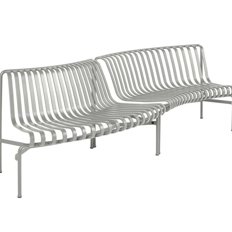 Matbänken Palissade Park är en del av HAY:s Palissade Park-kollektion, som består av modulära bänkar designade speciellt för större utomhusområden och kontraktsanvändning. Genom att koppla samman två eller fler bänkar kan du skapa anpassade sittarrangemang i bågformade, vågformade och runda konfigurationer. De grundläggande modulerna för bänkarna är böjda antingen inåt (in) eller utåt (ut).