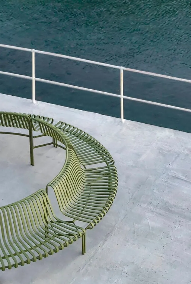 Palissade utemöbler har en stark, grafisk design som består av enkla stålrör och lameller. Ronan och Erwan Bouroullec har skapat en rad enkla, balanserade delar som passar bra för terrasser, balkonger, trädgårdar, kaféer och offentliga platser. Palissade-stolarna, borden och bänkarna är robusta men eleganta, och perfekta för utomhusbruk, eftersom vind och vatten kommer att passera genom den galvaniserade stålramen. Palissade-möblerna är designade för att åldras väl och dess dämpade färgpalett bidrar till det tidlösa och mångsidiga utseendet.