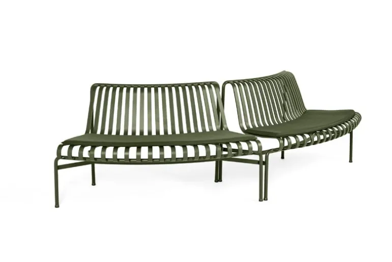 Matbänken Palissade Park är en del av HAY:s Palissade Park-kollektion, som består av modulära bänkar designade speciellt för större utomhusområden och kontraktsanvändning. Genom att koppla samman två eller fler bänkar kan du skapa anpassade sittarrangemang i bågformade, vågformade och runda konfigurationer. De grundläggande modulerna för bänkarna är böjda antingen inåt (in) eller utåt (ut).