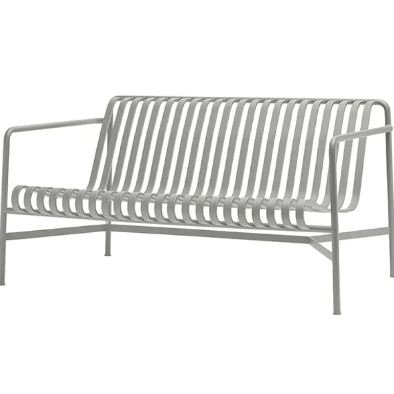 Den eleganta men ändå robusta Palissade-soffan är medlem i Hays mångsidiga kollektion av utemöbler. Palissade utemöbler har en kraftfull, grafisk design som består av enkla stålrör och lameller. Ronan och Erwan Bouroullec arbetade med kollektionen i två år och skapade en kollektion med enkla, välavvägda möbler som lämpar sig väl för terrasser, balkonger, trädgårdar, kaféer och offentliga utrymmen. Palissade stolar, bord och bänkar är robusta men eleganta, och perfekta för utomhusbruk, eftersom vind och vatten kommer att passera genom den galvaniserade stålramen. Palissade-möblerna är gjorda för att åldras vackert, och paletten med dämpade färger förstärker intrycket av tidlöshet och mångsidighet.