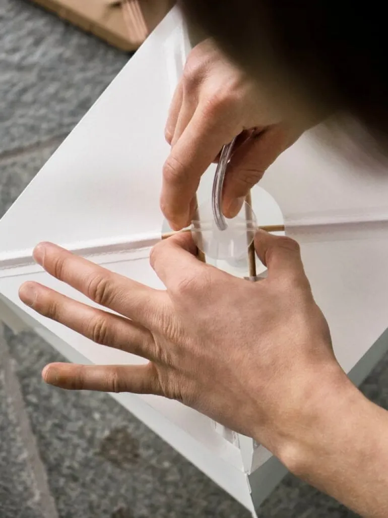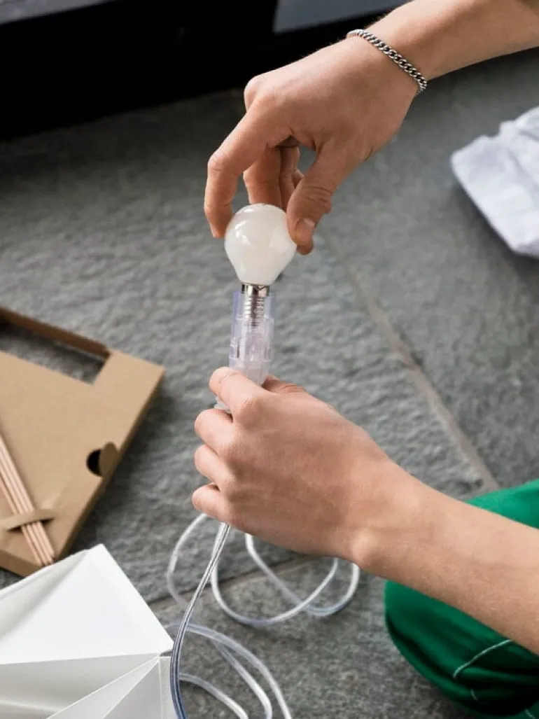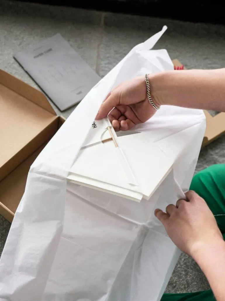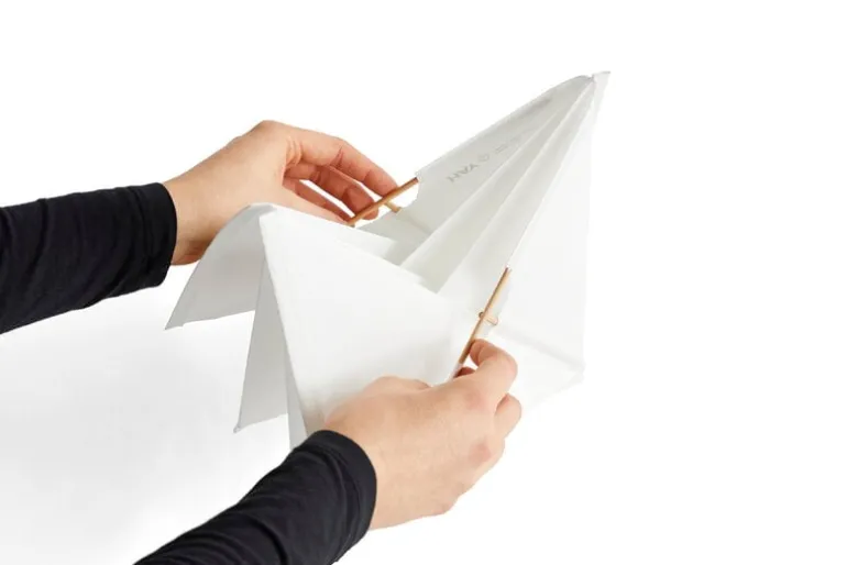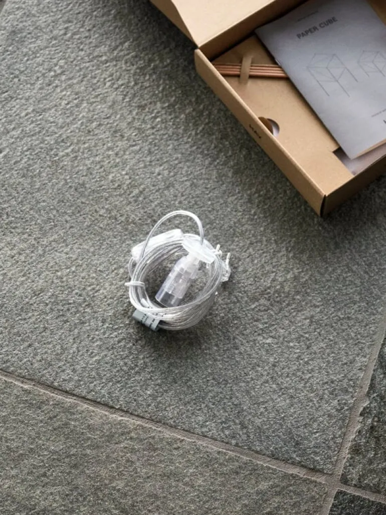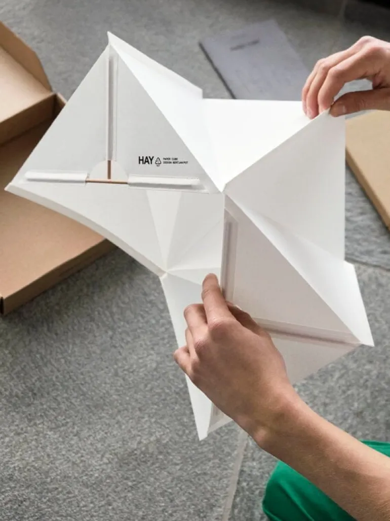 HAY:s bordslampa Paper Cube skapar en charmig och avslappnad atmosfär i olika rum i hemmet. Lampan, som är designad av Bertjan Pot, består av fyra tunna bokben som stöder en genomskinlig lampskärm. Som namnet antyder är Paper Cube både kubformad och tillverkad av papper – inte det typiska tunna skrivpapperet, utan ett hållbart och starkt japanskt pappersmaterial tillverkat av återvunna PET-flaskor. Ljuset lyser mjukt och vackert genom skärmens tunna yta.