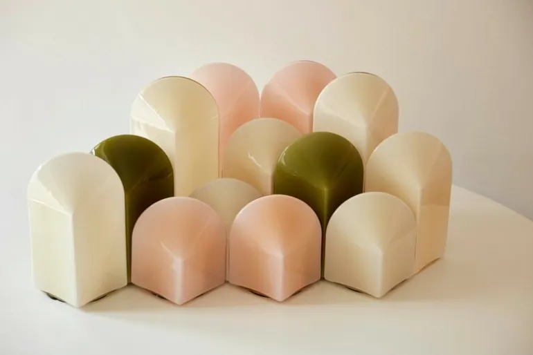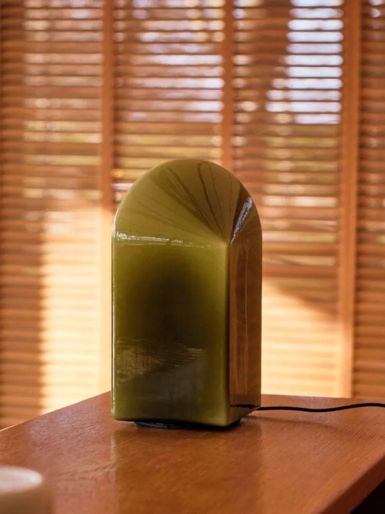 HAY:s Parade bordslampa är tillverkad av glänsande, opakt färgat glas. Designad av Viola Heyn-Johnsen och Jonas Trampedach, gör den vackra grafiska formen av armaturen att den inte bara är en ljuskälla utan också en skulptur i sig. Ytan på armaturen reflekterar ljuset från det omgivande rummet på fascinerande sätt, vilket gör att utseendet på Parade-lampan ständigt ändras beroende på vilken vinkel den placeras i. Bordslampan har en dimmerfunktion som gör att du kan justera ljusmängden precis rätt för utrymmet och stämningen. Den vackra Parade kommer att förtrolla sina betraktare även när ljuset är släckt.