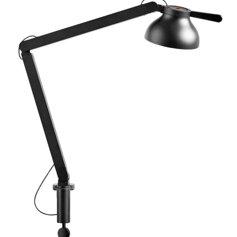 PC bordslampa är del av lampkollektionen PC som formgivaren Pierre Charpin designade för Hay. Lampan har en raffinerad och funktionell design som sticker ut på alla kontor eller arbetsrum. Tack vare de dolda gasfjädrarna behåller armarna av aluminium och polykarbonathuvudet sin position vart de än flyttas. Den integrerade strömbrytaren med touch-funktion på skärmen fungerar som en dimmer.