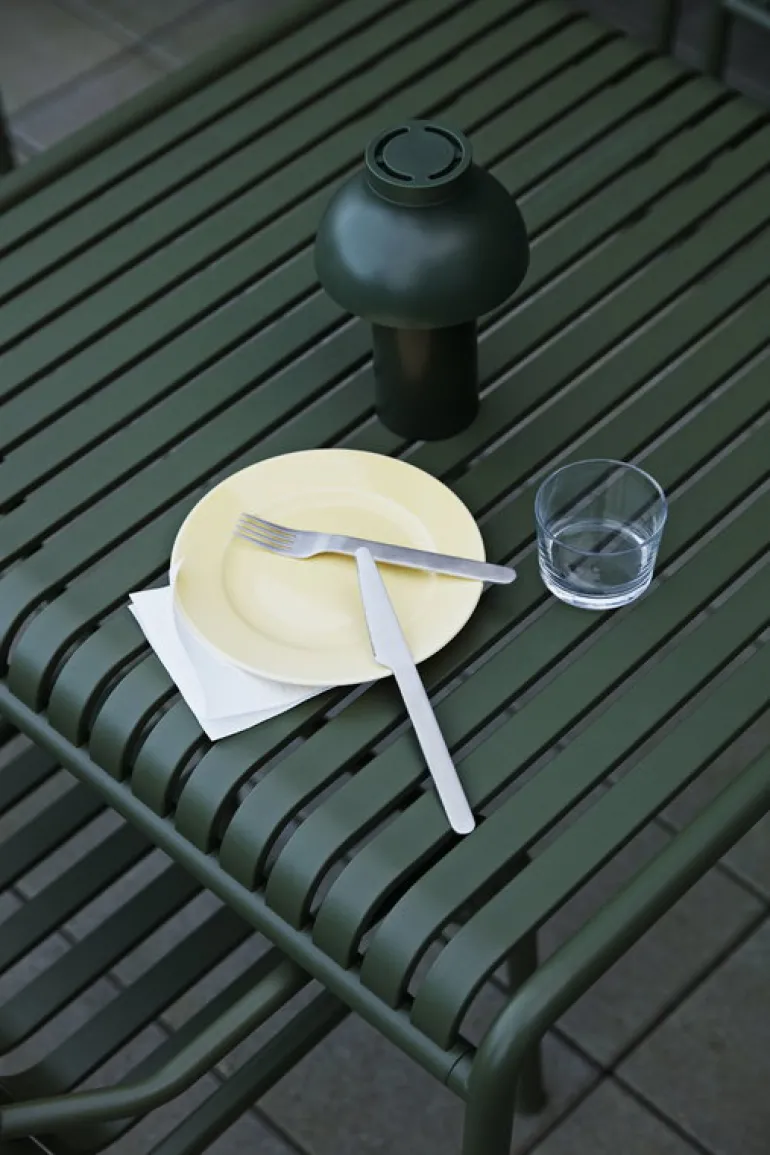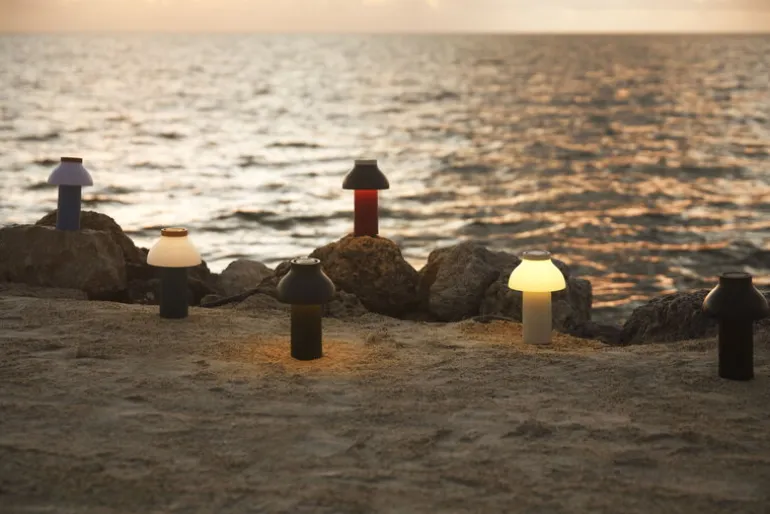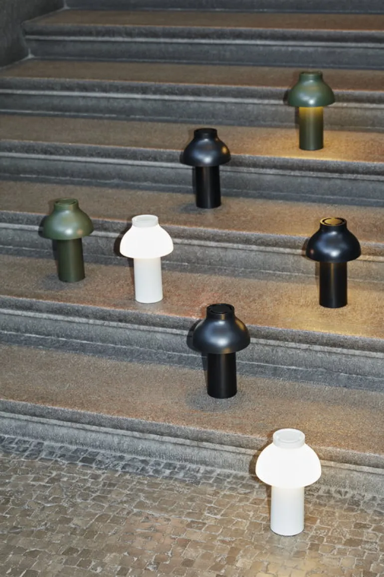 Hays bärbara bordslampa PC, designad av Pierre Charpin, är en laddningsbar bordslampa som kan användas både inne och ute. PC kommer att trivas överallt där du ställer ner den. Den sladdlösa konstruktionen gör PC idealisk för platser utan elektricitet, som t.ex. i sommarstugan, på vinden, altanen eller ute i trädgården. Lampan är tillverkad av polykarbonat med en matt ytbehandling och har en integrerad touch-dimmer med flera steg. Dimmern gör att du kan byta mellan starkt nedåtgående ljus och ett mjukare ljus som lyser upp omgivningen. Batteriet varar upp till 8 timmar med en laddning.