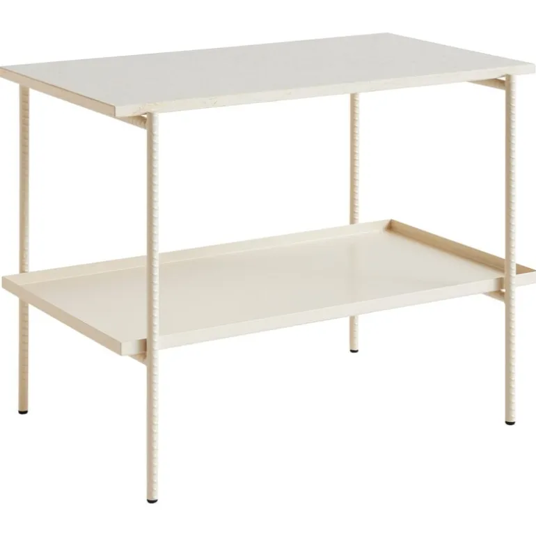 Sidobordet Rebar från HAY består av en alabasterfärgad stålram med industrikänsla i kombination med en elegant bordsskiva i marmor. Kombinationen av olika former och material ger Rebar en intressant och distinkt karaktär. De robusta materialen gör att bordet kan stå emot tidens tand. Soff- och sidoborden i kollektionen Rebar formgavs av Sylvain Willenz. De utformades för att passa både i hemmet och i offentliga miljöer.