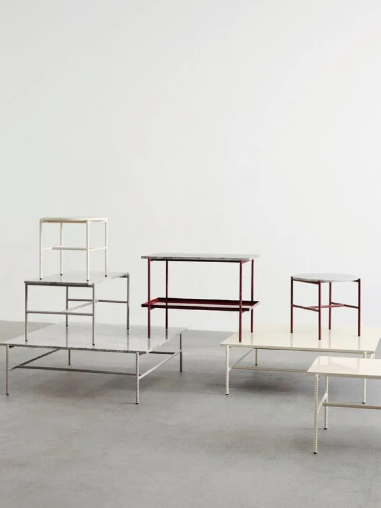 Sidobordet Rebar från HAY består av en stålram med industrikänsla kombinerat med en elegant bordsskiva i marmor. Kombinationen av olika former, nyanser och strukturer ger Rebar en intressant och distinkt karaktär. De robusta materialen gör att bordet kan stå emot tidens tand. Soff- och sidoborden i kollektionen Rebar formgavs av Sylvain Willenz. De utformades för att passa både i hemmet och i offentliga miljöer.