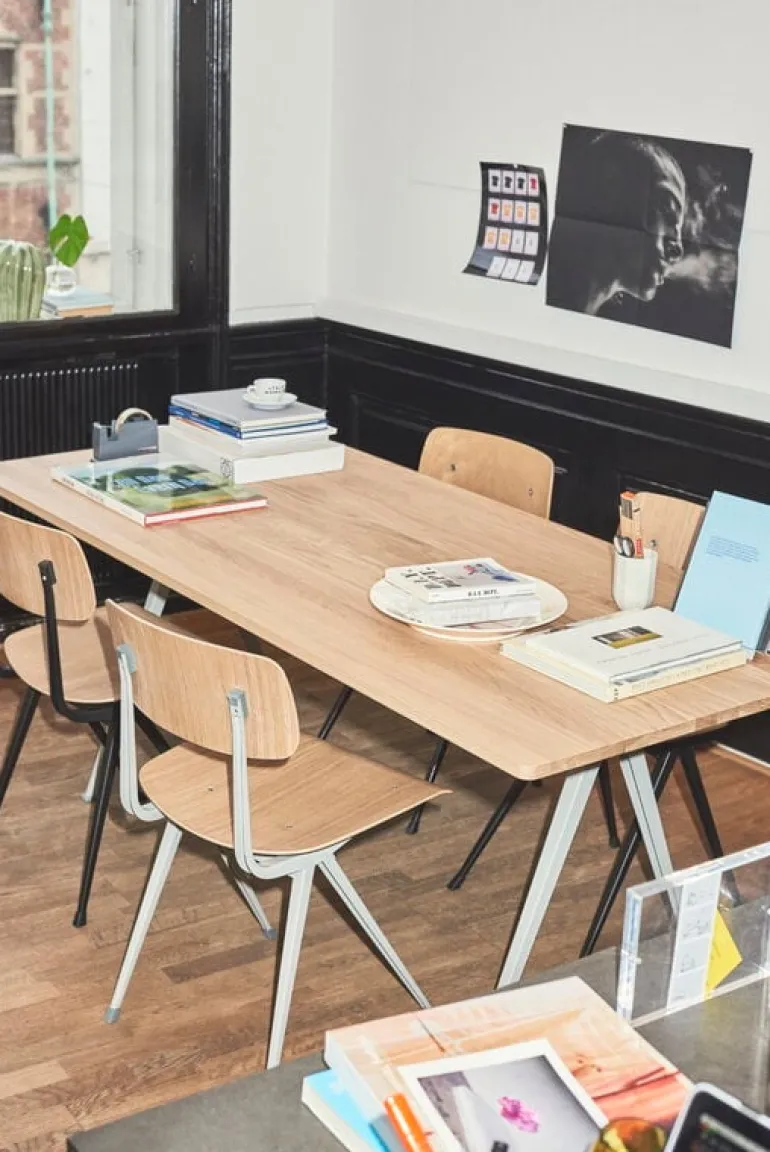 Stolen Result är designad av Friso Kramer och Wim Rietveld för Ahrend på 1950-talet och har återlanserats av Hay i samarbete med Ahrend. Result är en stilren kombination av en stålram och en sits samt ryggstöd i välvd plywood, och ansågs på 50-talet vara ett mästerverk tack vare det innovativa valet av plåt, och än i dag har stolen en fräsch framtoning. Tack vare den ljusa och funktionella designen var Result en populär stol i skandinaviska skolor, och har använts mycket både i allmänna och privata sammanhang. Framer och Rietveld skapade Result för att bilda par med bordet Pyramid, vilket är en perfekt matchning till stolen. Result finns tillgänglig i olika storlekar och kombinationer av basfärger och träfinish.