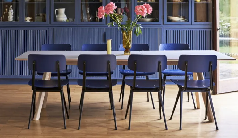 Stolen Result är designad av Friso Kramer och Wim Rietveld för Ahrend på 1950-talet och har återlanserats av Hay i samarbete med Ahrend. Result är en stilren kombination av en stålram och en sits samt ryggstöd i välvd plywood, och ansågs på 50-talet vara ett mästerverk tack vare det innovativa valet av plåt, och än i dag har stolen en fräsch framtoning. Tack vare den ljusa och funktionella designen var Result en populär stol i skandinaviska skolor, och har använts mycket både i allmänna och privata sammanhang. Framer och Rietveld skapade Result för att bilda par med bordet Pyramid, vilket är en perfekt matchning till stolen. Result finns tillgänglig i olika storlekar och kombinationer av basfärger och träfinish.