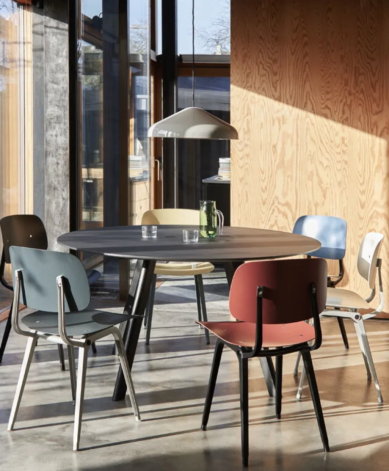 HAY:s stol Revolt är en nyutgåva av en stol som designades av Friso Kramer för Ahrend på 1950-talet. Under årens lopp har stolen Revolt blivit en av Kramers mest kända verk och den är ett utmärkt exempel på formgivarens minimalistiska stil.