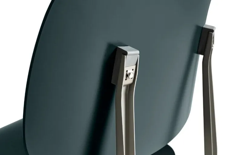 Stolens kärna är dess metallram, som lite ovanligt inte är gjord av metallrör utan av en tunn, vinklad stålplåt. Den unika konstruktionen av ramen garanterar inte bara ett distinkt utseende utan också en ergonomisk och bekväm sittställning – ryggstödet lutar sig lite när du sätter dig på stolen. I HAY:s nylanserade version är sitsen och ryggstödet tillverkade av 100 % återvunnen plast. Tack vare sin enkla och mångsidiga design passar Revolt-stolen lika bra vid matbordet som på kontoret eller i ett konferensrum.