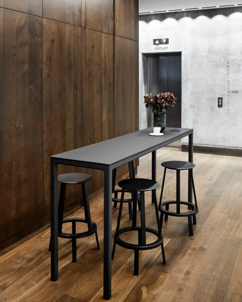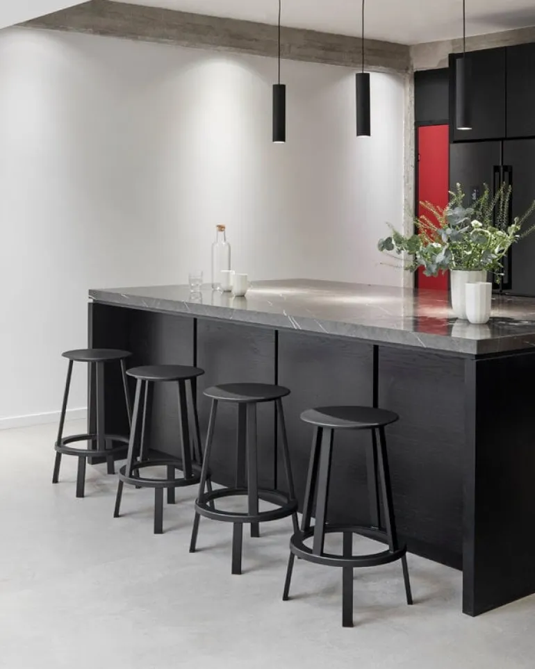 Revolver barstol från HAY består av två delar: den robusta underdelen och den övre sittplatsdelen som roterar 360 grader. Den roterande sittplatsen med fotstöd är praktisk i vardagligt bruk. Revolver barstol är tillverkad av pulverlackerat stål.