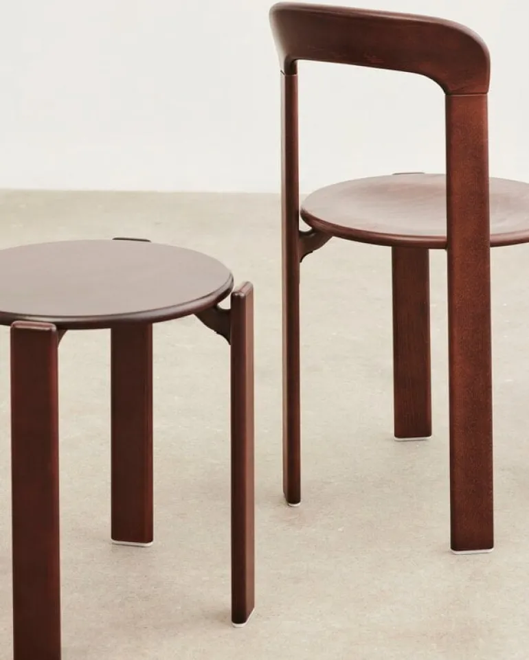 I Rey-kollektionen kombineras träramen och sätet på ett innovativt sätt tack vare de gjutna aluminiumbeslagen. Den unika mekanismen ger också pallen dess distinkta utseende: sätet ser nästan ut som om det svävar, vilket fulländar den robusta designen med en oemotståndligt attraktiv lätthet.