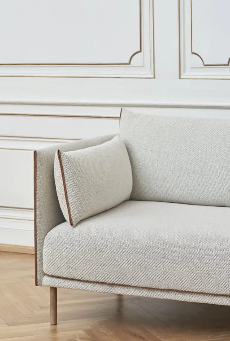 Hays soffa Silhouette har en enkel men elegant silhuett som mjukas upp av ryggens kurva. Silhouette bärs upp av smala ben i antingen stål eller ek, och har klätts i högklassigt tyg. Passpoal i läder ger klädseln en grafisk touch. Tack vare den lätta men rymliga strukturen passar Silhouette bra i både vardagsrum och offentliga lounger. Dess svala minimalism kommer aldrig bli omodern. Silhouette-kollektionen, som designats av GamFratesi, kommer i många olika storlekar, klädslar och ben.