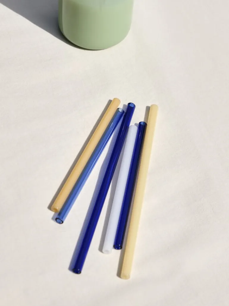 HAY:s sugrör Sip Smooth kan användas om och om igen. De färgglada sugrören är tillverkade i tåligt borosilikatglas och kan till och med användas till varma drycker. Sugrören Sip Smooth är en aning grövre och passar därför särskilt bra till smoothies och andra tjockare drycker. Förpackningen innehåller fyra återanvändningsbara sugrör och en praktisk liten borste att göra rent dem med.
