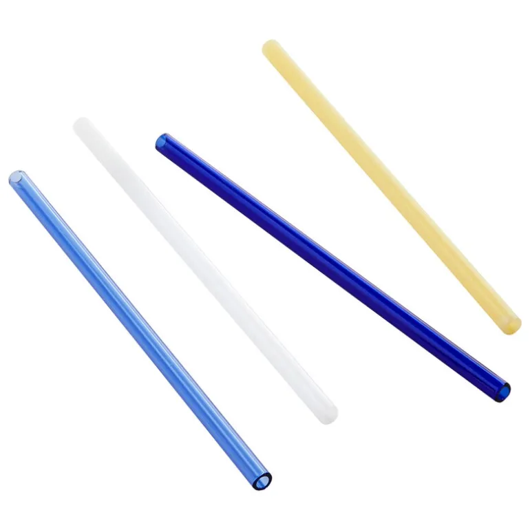 HAY:s sugrör Sip Straight kan användas om och om igen. De färgglada sugrören är tillverkade i tåligt borosilikatglas och kan till och med användas till varma drycker. Förpackningen innehåller fyra återanvändningsbara sugrör och en praktisk liten borste att göra rent dem med.