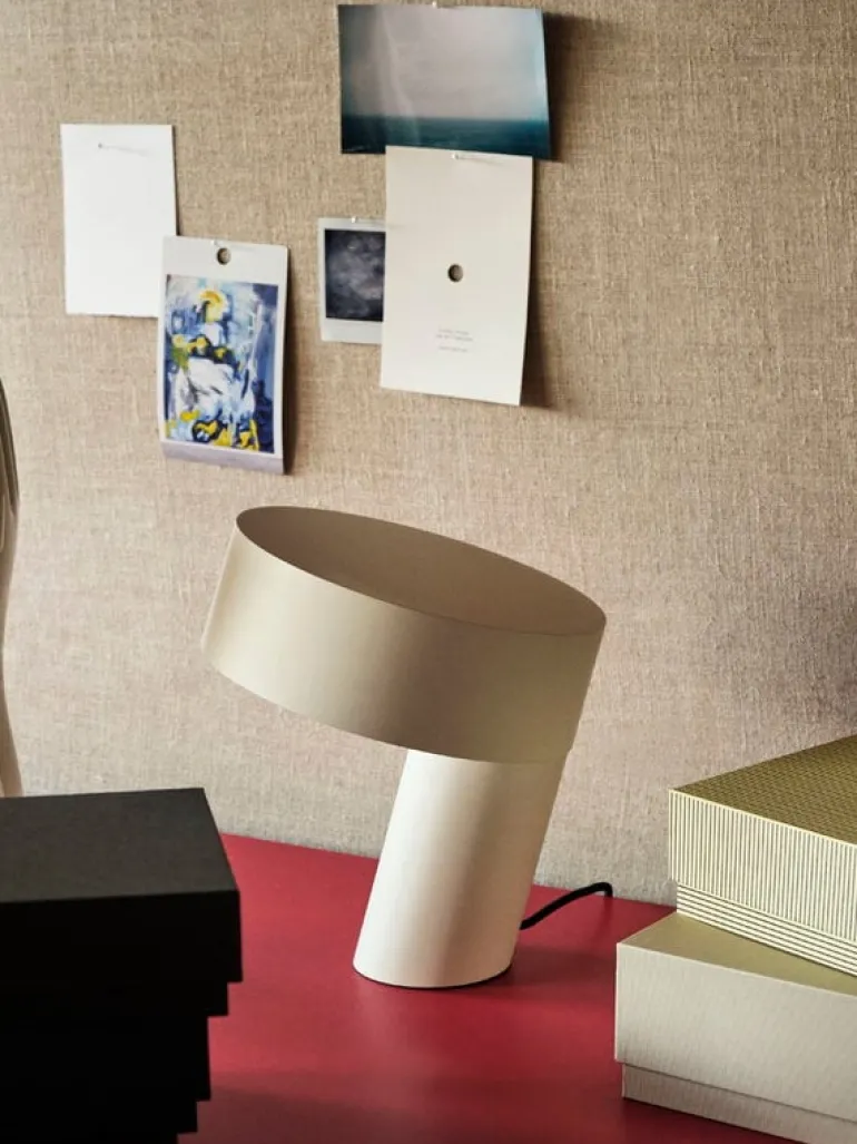HAY:s bordslampa Slant från designstudion BRANCH imponerar med sin tydliga siluett och japanska design. Den viktade basen och den cylindriska skärmen på aluminiumarmaturen skapar ett fascinerande intryck av obalans, samtidigt som den står perfekt på plats. Med hjälp av en funktionell dimmer ger Slant bordslampa ett starkt spotlight-ljus eller en mjuk atmosfär i ditt hem eller på kontoret.