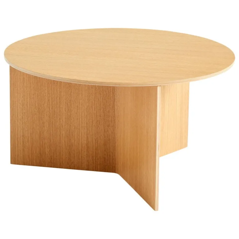 HAY:s XL Slit Wood bord är ett enkelt träkaffebord med en delikat design inspirerad av japansk origamikonst. Det runda bordsskivan stöds av en geometrisk ram som liknar ett vikt papper origami. Använd Slit-borden ensamma, i par eller som vackra kluster bildade av olika färger och former.