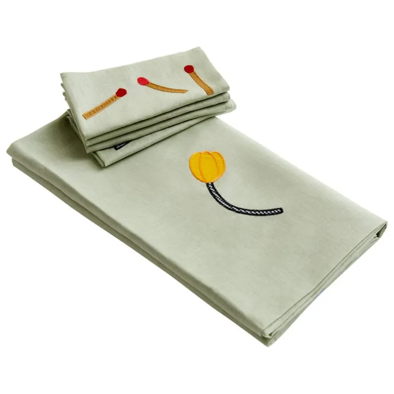 HAY:s Sobremesa duk, skapad av den egyptiska kocken och konstnären Laila Gohar, är designad för att göra dukningen och måltiden till en upplevelse. Dekorerad med udda broderier och applikationer, fungerar linneblandningsduken som en rolig och funktionell detalj för både vardagliga och festliga tillfällen.