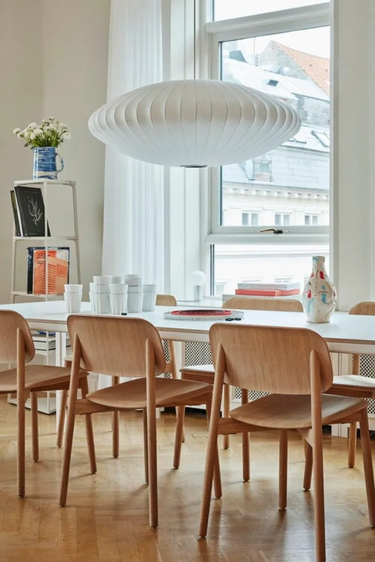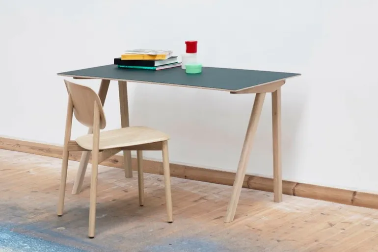 | Stolen Soft Edge, från Hay, har en trivsam och rundad design: sitsens kanter är rundade nedåt för att eliminera skarpa kanter och hörn. Designstudion Iskos-Berlin har använt de allra senaste innovationerna i formpressad plywood, vilka möjliggör nya tredimensionella former och reducerar konsumtionen av naturresurser. Resultatet är den lätta och stapelbara stolen Soft Edge som passar lika bra i hemmet som i offentliga miljöer. 2021 var året då Hay förnyade sina metoder för ytbehandling av trämöbler genom att byta ut färgerna och lackerna mot mer miljövänliga, vattenbaserade alternativ. Uppdateringen innebär att de nu enbart använder en sorts lack, för möbler av naturligt trä, istället för två som tidigare. Hays nya vattenbaserade lack är glansigare än den föregående mattlacken, men är samtidigt lite mattare än den klarlack som användes tidigare. |