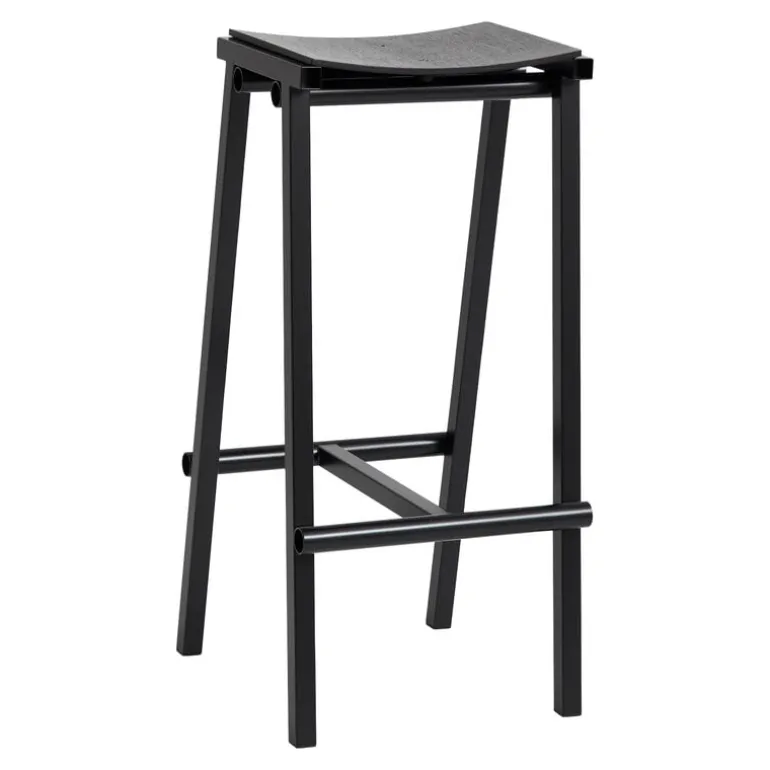 Taburete 8 från HAY är en enkel men uttrycksfull barstol som sprider glädje vid varje köksö, bardisk eller mötesbord. Den industriella ramen och fotstöden som sticker ut på Taburete 8 är tillverkade av målade stålrör. Det sitter en sits i ekfaner som skapar en mysig kontrast med sin graciösa, bågformade design, som uppnåtts genom att den enkelt fästs i stålramen under tryck.