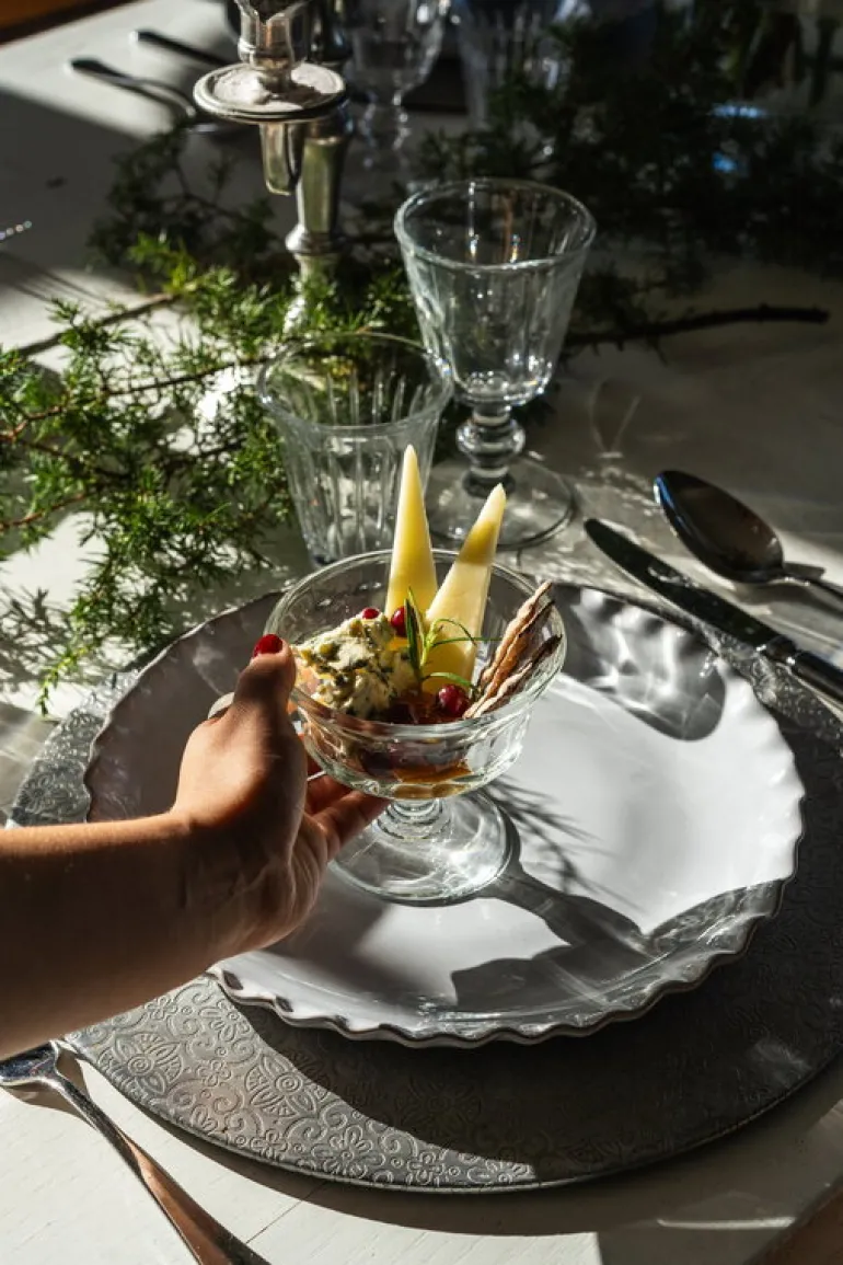 Twist-tallriken är en del av kollektionen Nosse Ceramics for Heirol, som hyllar en kultur där man gärna samlas tillsammans. Servisen kännetecknas av sin mångsidighet, enkelhet, tidlöshet och miljövänliga material. Den skapar harmoniska och mysiga dukningar både till vardags och vid mer festliga tillfällen.
