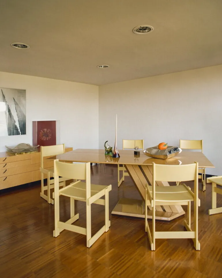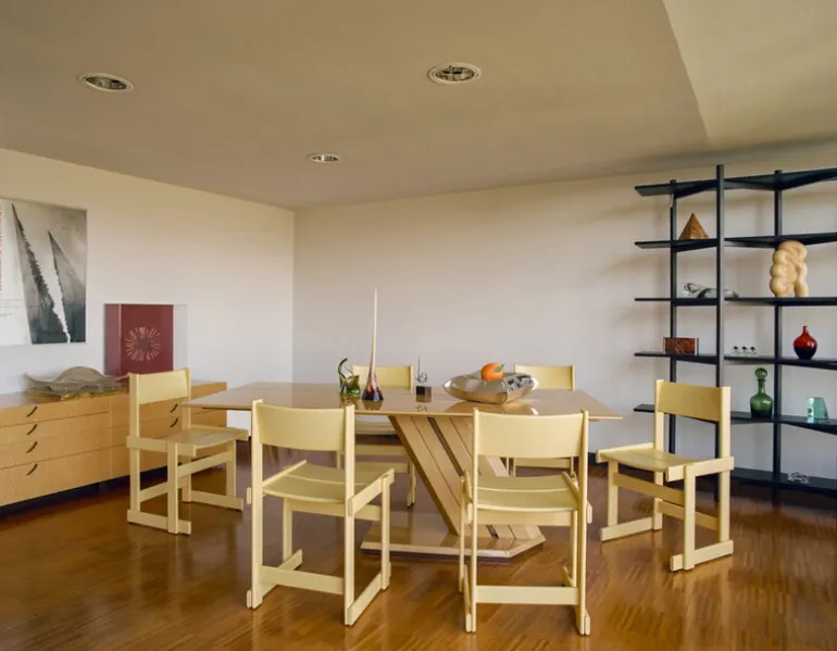 Stolen Bullnose från Hem har en robust och distinkt karaktär som kommer att vara en fröjd för ögat i vardagsrummet såväl som i offentliga miljöer. Stolen i bok är designad av Marco Campardo och dess stadiga form mjukas upp av de rundade hörnen, en egenskap som vanligtvis återfinns på hyllor och bord snarare än på stolar. De skickligt sammanfogade trädelarna gör matstolen Bullnose inte bara snygg utan även extremt bekväm att sitta på, även under långa middagar.