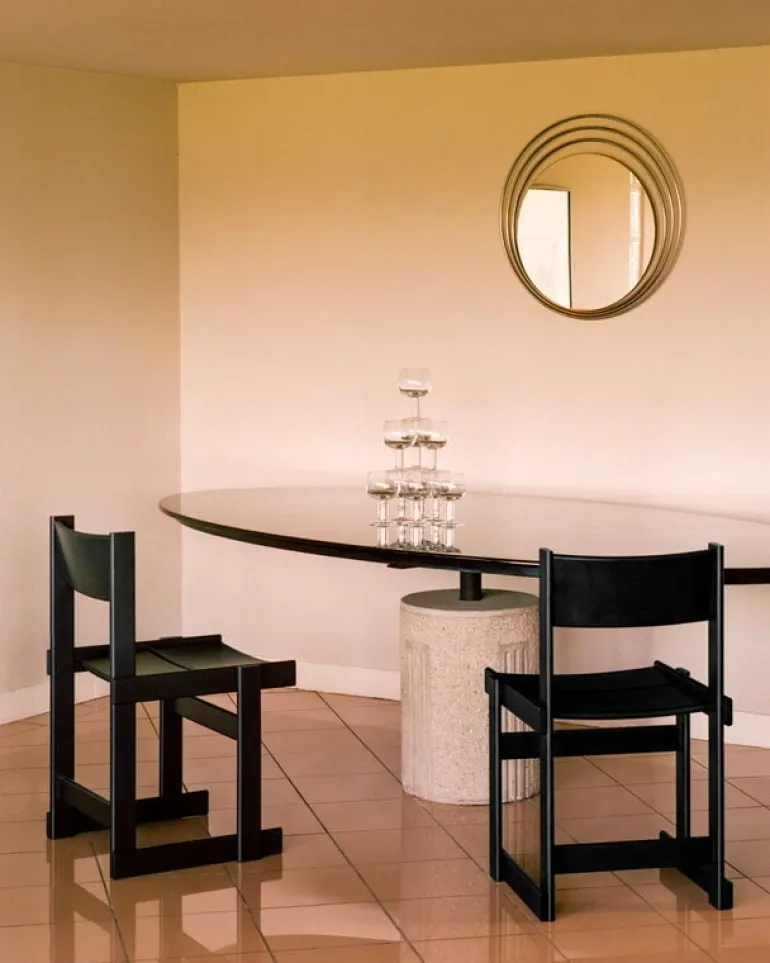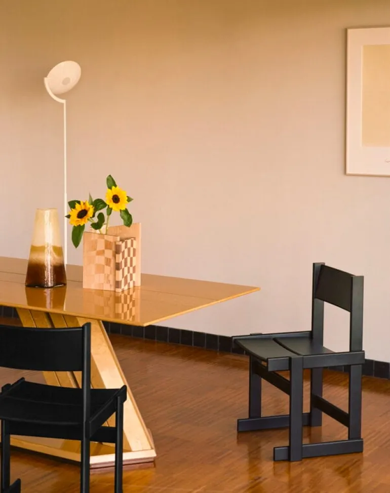 Stolen Bullnose från Hem har en robust och distinkt karaktär som kommer att vara en fröjd för ögat i vardagsrummet såväl som i offentliga miljöer. Stolen i bok är designad av Marco Campardo och dess stadiga form mjukas upp av de rundade hörnen, en egenskap som vanligtvis återfinns på hyllor och bord snarare än på stolar. De skickligt sammanfogade trädelarna gör matstolen Bullnose inte bara snygg utan även extremt bekväm att sitta på, även under långa middagar.