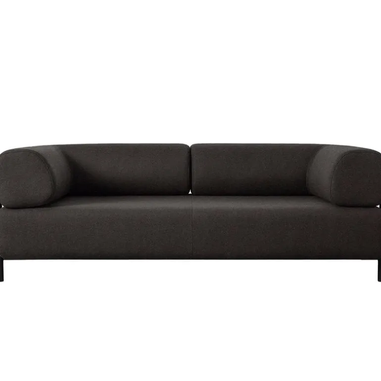 Soffan Palo från Hem har en nedtonad nordisk design i minimalistisk stil baserad på enkla geometriska former och med en klassisk ullklädsel. Trots sitt stilrena utseende är den tvåsitsiga soffan allt annat än slätstruken: det fylliga ryggstödet och de roliga, exponerade trä- och metallbenen ger den en viss lekfullhet. Kontrasten mellan de smala benen och den djupa sitsen gör designen väldigt originell.