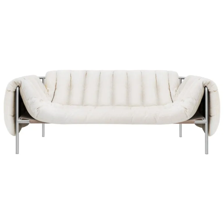 Soffan Puffy, från Hem, charmar med en härlig kontrast av former och material. Designad av Faye Toogood, består Puffy av en strömlinjeformad, tubulär stålram och en rund, avtagbar dyna som vilar fritt på ramen, klädd i ett högkvalitativt bomullsblandat tyg. Soffans lekfulla utseende ger en avslappnad touch till vardagsrummet eller lobbyn, och dess luftiga design smälter enkelt in i alla typer av inredningar, minimalistiska eller maximalistiska. Finns i flera färg- och klädselalternativ.