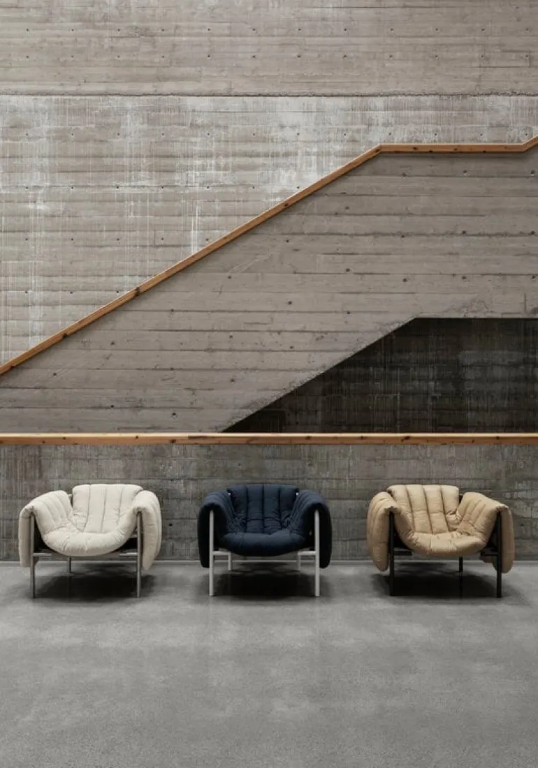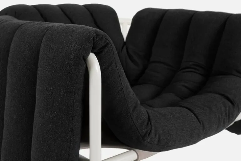 Fåtöljen Puffy, från Hem, charmar betraktaren med sina underbara form- och materialkontraster. Puffy är designad av Faye Toogood och består av en strömlinjeformad stålrörsram med en fyllig, avtagbar klädsel som löst vilar på ramen. Fåtöljen Puffys lekfulla utseende ger vardagsrummet eller lobbyn en avslappnad touch, och dess luftiga design gör den väl lämpad för alla typer av inredningar, minimalistiska som maximalistiska. Tillgänglig i en rad olika färger och klädselval.