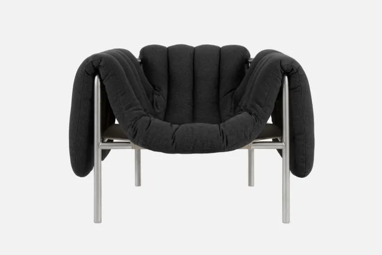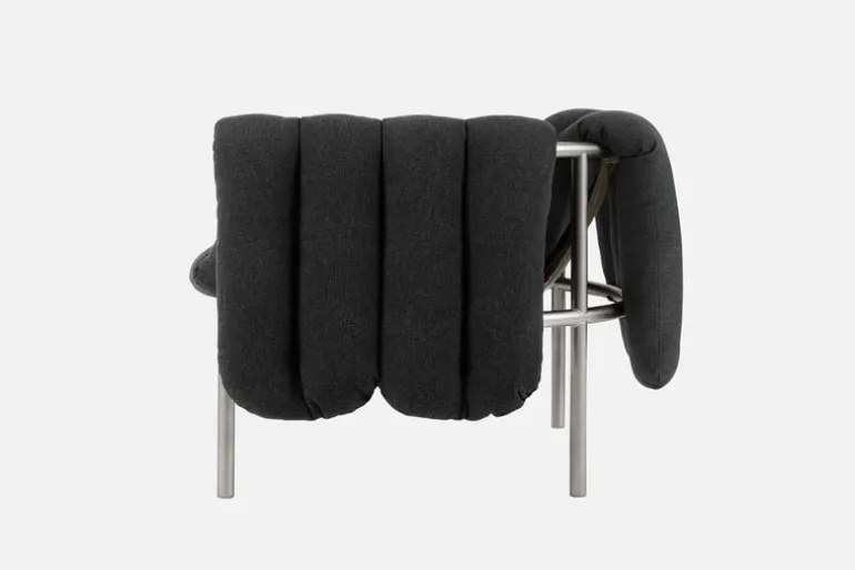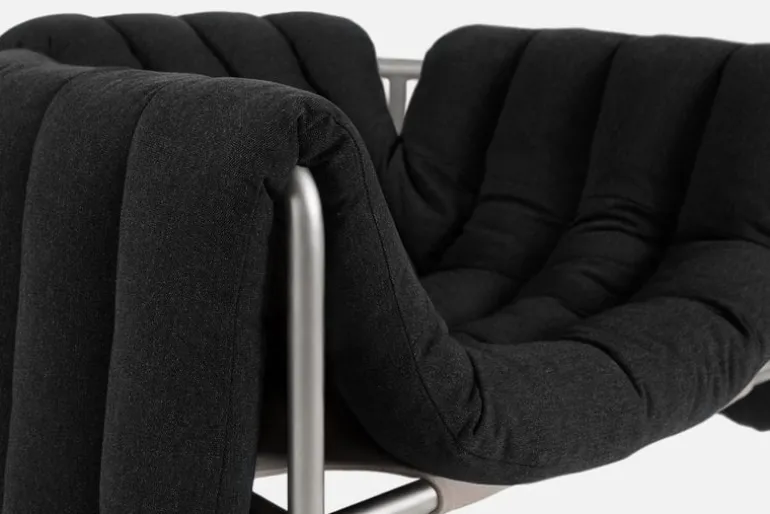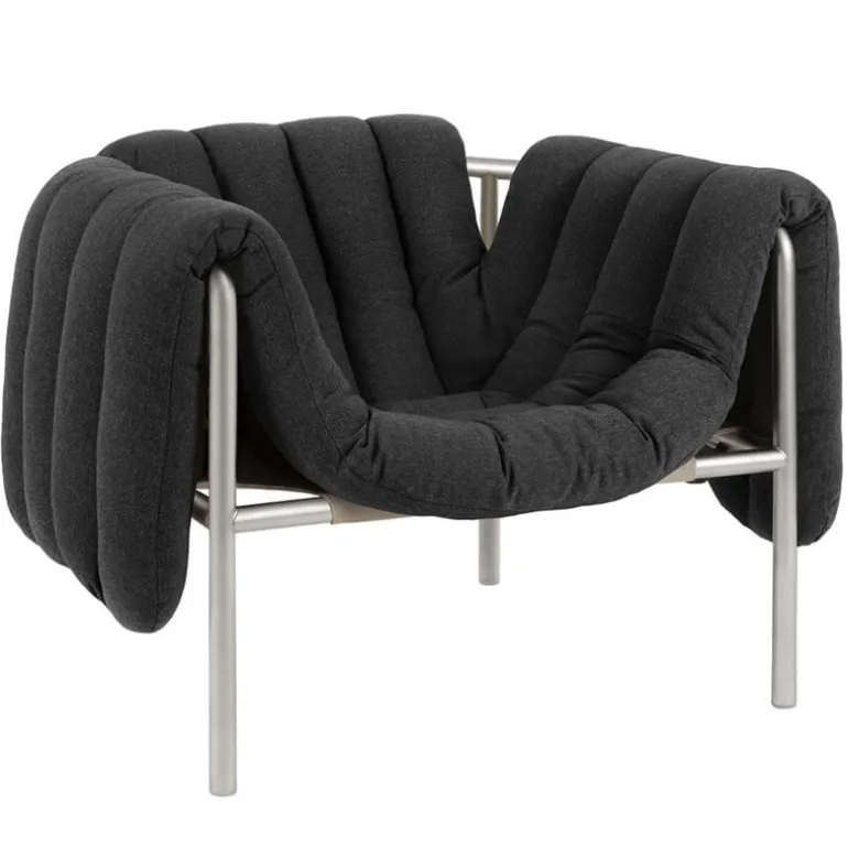 Fåtöljen Puffy, från Hem, charmar betraktaren med sina underbara form- och materialkontraster. Puffy är designad av Faye Toogood och består av en strömlinjeformad stålrörsram med en fyllig, avtagbar klädsel som löst vilar på ramen. Fåtöljen Puffys lekfulla utseende ger vardagsrummet eller lobbyn en avslappnad touch, och dess luftiga design gör den väl lämpad för alla typer av inredningar, minimalistiska som maximalistiska. Tillgänglig i en rad olika färger och klädselval.