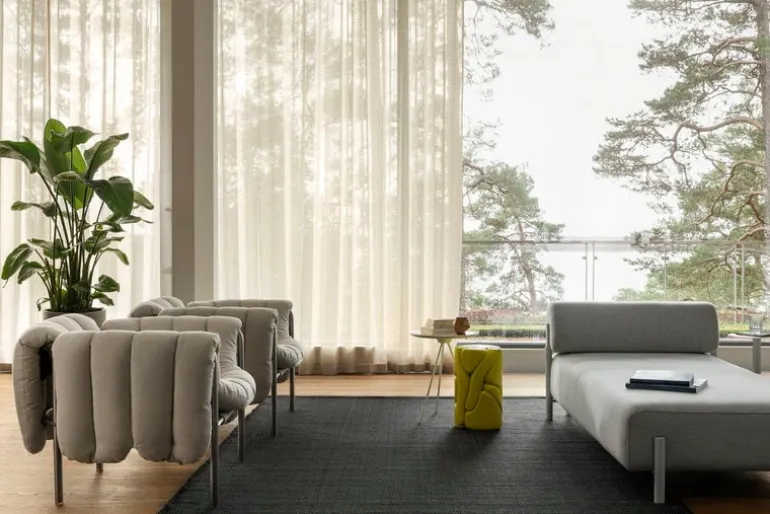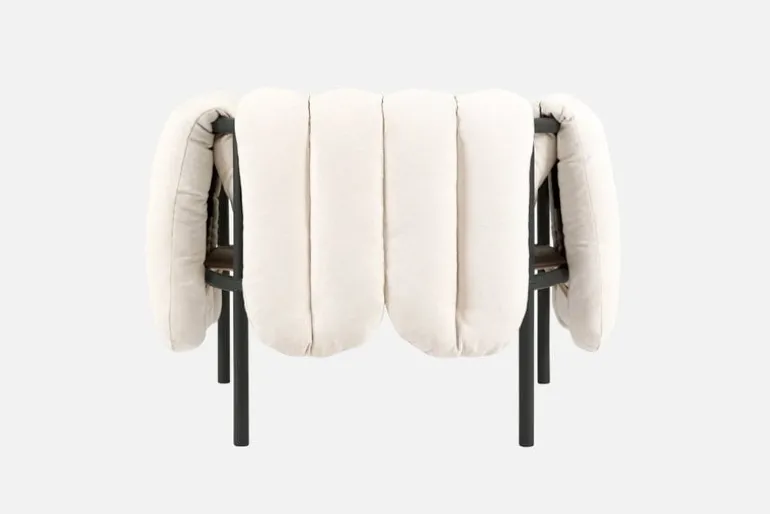 Fåtöljen Puffy, från Hem, charmar betraktaren med sina underbara form- och materialkontraster. Puffy är designad av Faye Toogood och består av en strömlinjeformad stålrörsram med en fyllig, avtagbar klädsel som löst vilar på ramen. Fåtöljen Puffys lekfulla utseende ger vardagsrummet eller lobbyn en avslappnad touch, och dess luftiga design gör den väl lämpad för alla typer av inredningar, minimalistiska som maximalistiska. Tillgänglig i en rad olika färger och klädselval.