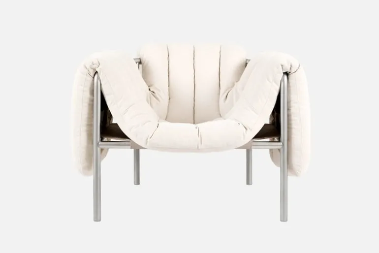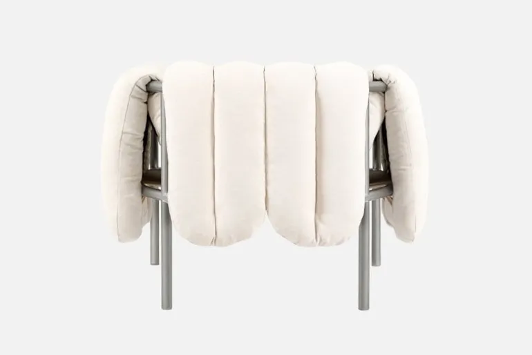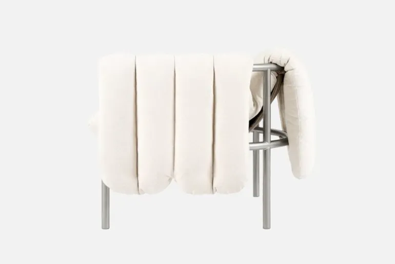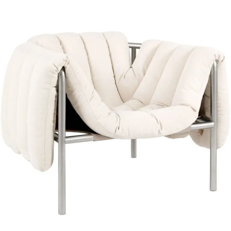 Fåtöljen Puffy, från Hem, charmar betraktaren med sina underbara form- och materialkontraster. Puffy är designad av Faye Toogood och består av en strömlinjeformad stålrörsram med en fyllig, avtagbar klädsel som löst vilar på ramen. Fåtöljen Puffys lekfulla utseende ger vardagsrummet eller lobbyn en avslappnad touch, och dess luftiga design gör den väl lämpad för alla typer av inredningar, minimalistiska som maximalistiska. Tillgänglig i en rad olika färger och klädselval.
