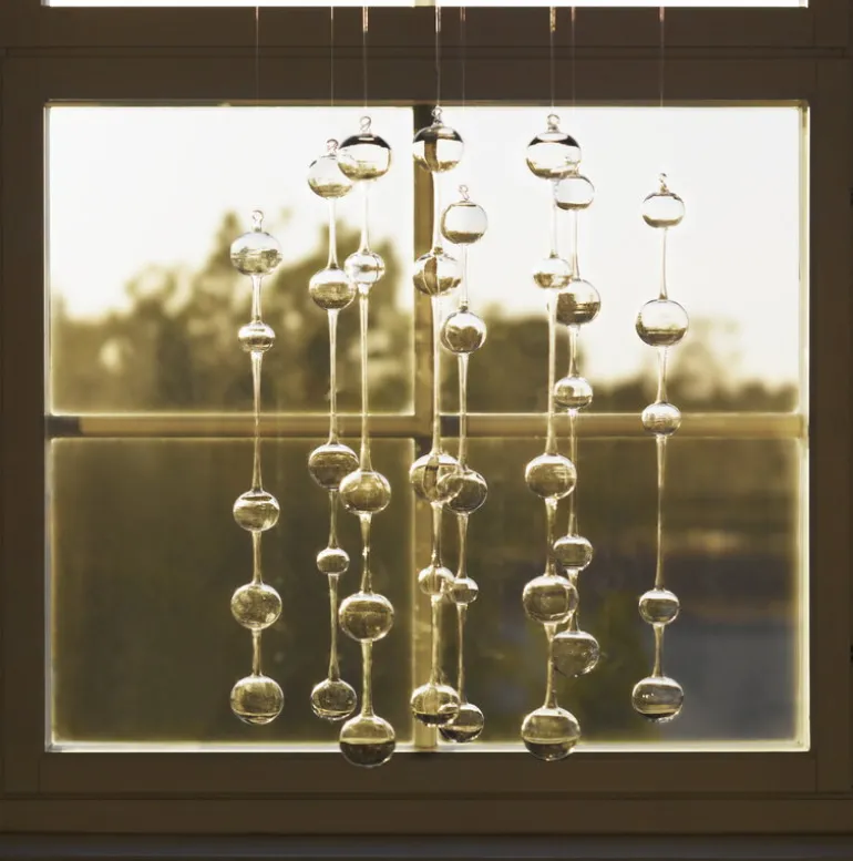Morgon i Aten är en skulptur tillverkad av hängande glasdekorationer. Inspirationen till skulpturen hämtade Kaj Franck i det vackra Grekland. När de tunna glaskloten rör sig i vinden hörs ett mjukt och metalliskt ljud som påminner om kyrkklockorna i Aten en söndagsmorgon. Morgon i Aten tillverkades mellan åren 1954-1975 och 1992-1994 vid Nuutajärvi-fabriken, Finlands äldsta glasbruk, och har nu lanserats igen. Skulpturen Morgon i Aten är tillverkad i handblåst glas och finns i tre modeller som skiljer sig något, det här setet innehåller alla tre sorterna.